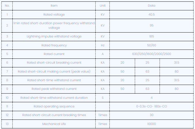 VSG-40.5 series vacuum circuit breaker is a new type of three-phase 50Hz according to the unique design concept and combined with the market demand and development, the rated voltage of indoor switchgear 40.5kV, it can be provided to industrial and mining enterprises, power plant and substation as the control and protection of electrical equipment, and is suitable for frequent operation.