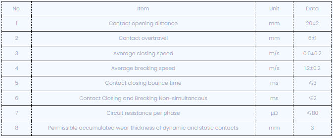 Post adjusting circuitus ruptor, mechanica proprium parametri ostenditur infra:
