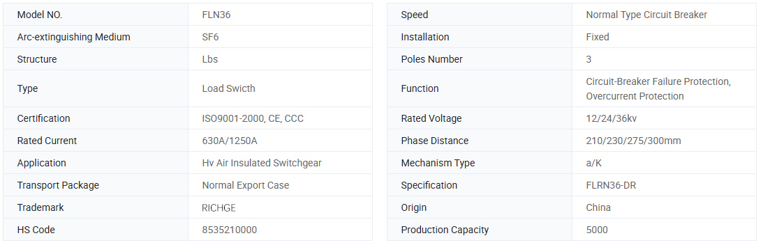 I: FL (R) N36 Umbraticis MV SF6 onus switch est in umbraticis switchgear cum rated voltage of 12kv, 24kv et 40.5kv, per SF6 Medium, comprehendo tres stationes exstinguendo, per SF6, inter tres statio exstinguendo, et inaperiens et grounding. Habet characteres parva magnitudine, convenient installation et usu, et fortis applicability ad environment.