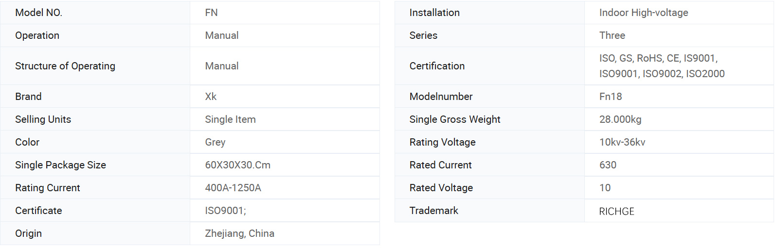 FN18 Series Umbraticis High-Voltage Load Switch habet commoda facile consilio, operatio, pacto structuram, parva volumine, plenum munus, lux pondus, ieiunium solveret et claudendo celeritate et altum reliability. Est idoneam ad AC 50Hz, rated voltage 12kv, 24kv, rated current 630a et tres-phase distribution system, praesertim ad civitatem network constructione et renovationis, praesertim ad civitatem, quod est specimenque in arca-type substation et transformer est in usale, et ad specimen, quod est specimen, et in Type Vestibulum.