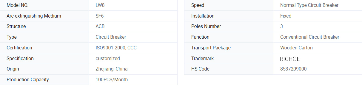 Et LW8 (a) -40.5 velit AC SF6 Circuit Breaker est trium-phase, 50Hz velit summus voltage electrica fabrica disposito usu in potentia systems cum rated voltage of 40.5 kv.