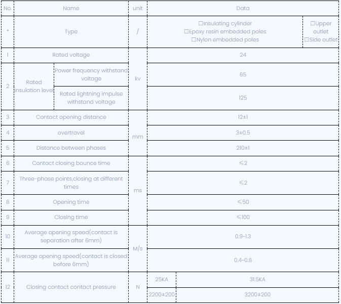 Et operatio mechanism of vbi-XXIV latus mounted genus vacuo circuitu compensatur est usus vere ad repono industria, quae potest esse operabatur per duo modi, manual vel electrica.The characteres sunt normae sunt secundum GB1984-89, JB3855-96<10kv Indoor High Voltage Vacuum Circuit Breaker General Technical Specifications>, Pertinita praescripta IEC56 Latin.