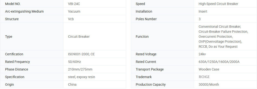 VBI, XXIV medium voltage vacuo circuitu ruptor est quaedam umbraticis medium voltage switch apparatu cum 50Hz / 60Hz tria Phase AC 24kv rated in Helvetia, quae combined in Sina abb Corporation in Switzerland et in Sinis. Product Complies cum vexillum GB1984 & Iec62271-100.
