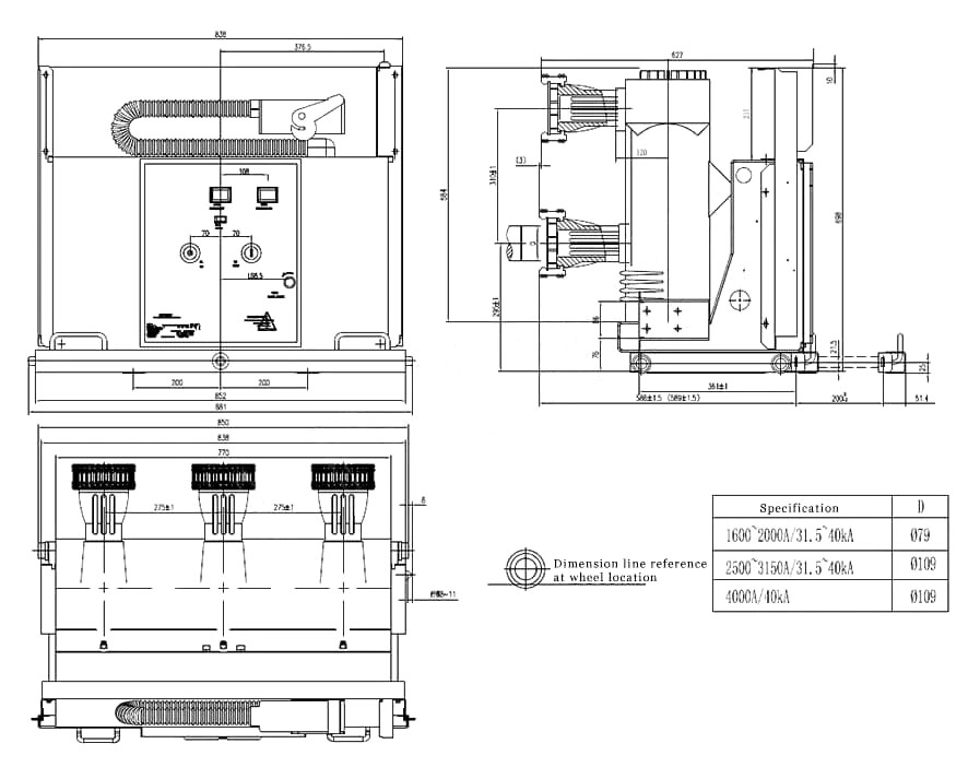 Vs1-12 / (IV) Trolley Type vacuum Circuit Breaker Vallis Cylinder High current 4000a
