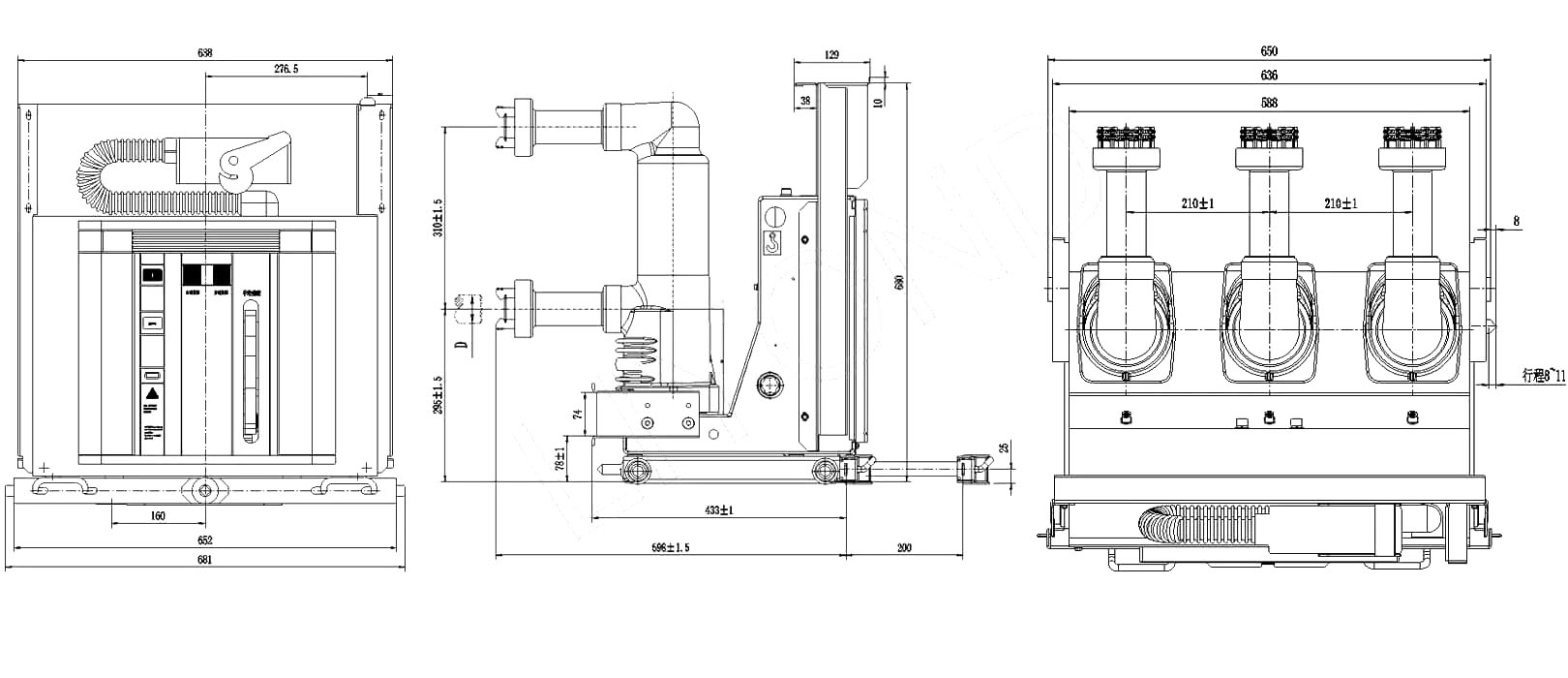 Dimensiones VSG-XII / 2000A HandCart Type vacuum Circuit Breaker cum polus fixum