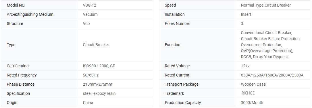 VSG-XII Type Indoor High Voltage Vacuum Circuit Breaker solebat vere ad repono industria. Operating mechanism potest operari per duo vias, per manual et electromotive operatio, in characteres est secundum GB1984-2003 High Voltage AC Circum Breaker, JB3855-1996 3.6-4.5KV UMBRIDUS AC PM EXPLATUS AC AC CIRCUS Breaker